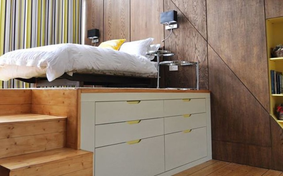 - Para guardar vestimenta o calzado, se pueden construir cajoneras debajo de la cama, o placards como muebles divisorios.